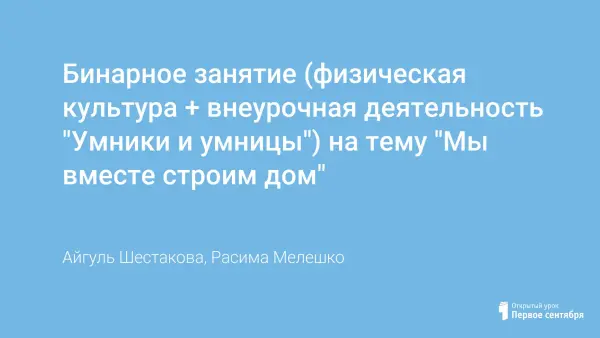 Курс «Умникам и умницам. Развитие познавательных способностей» О.А.Холодовой представляет систему интеллектуально-развивающих занятий. Занятия по РПС отличаются тем, что ребёнку предлагаются задания неучебного характера. В рамках внеурочной деятельности (на основе этого курса) мы разработали и провели несколько бинарных занятий. Так на занятии «Мы вместе строим дом» учебная деятельность превратилась в увлекательную игру и заинтересовала каждого ребенка.