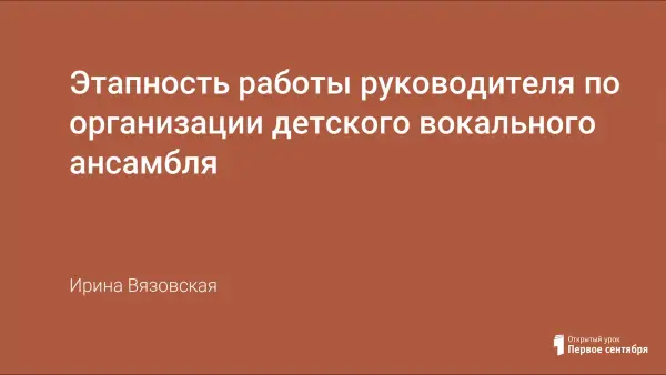 Процесс организации детского вокального коллектива проходит ряд этапов. Прием в ансамбль. Прослушивание детских голосов в ансамбль обычно проводится в два тура. Составление руководителем плана работы, где должны быть предусмотрены вопросы и задачи музыкально-теоретического и вокально-певческого развития учащихся. Родительское собрание. Необходимо приглашать врача-фониатра. Создание оптимальных условий для занятий ансамбля.
