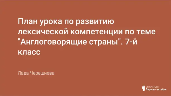 Данный урок по развитию лексической компетенции учащихся позволяет совершенствовать лексические навыки по теме «Англоговорящие страны» и тренировать их в употреблении сверхфразового единства.