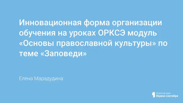 Данный урок предполагает самостоятельную работу учащихся по теме «Заповеди». Учитель выступает как координатор. Урок готовится в течение недели. Подготовка предусматривает помощь ученику в его индивидуальном проекте «Моисей». Урок направлен на моделирование ситуации из прошлого, побуждает ребят к перевоплощению в другого человека. Данная форма организации обучения побуждает осваивать и углублять новые знания, расширяет кругозор.