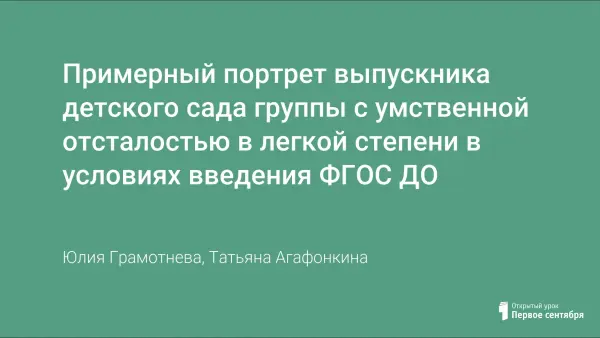 Примерный портрет выпускника детского сада группы с умственной отсталостью в легкой степени в условиях введения ФГОС ДО
