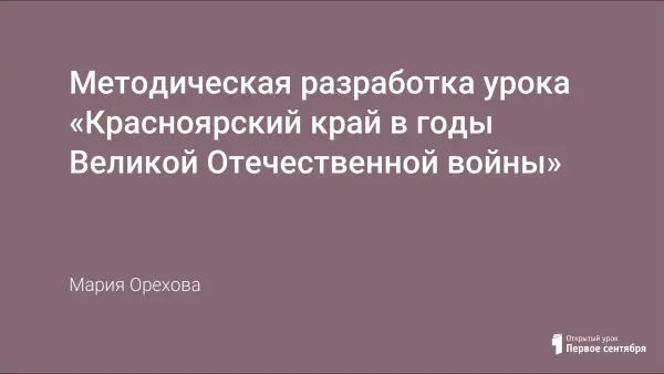 В ходе урока обучающиеся узнают о жителях родного края, сражавшихся на фронтах Великой Отечественной войны, функционировании секретной авиатрассы «Аляска–Сибирь», героической обороне Диксона, вкладе красноярцев-тружеников тыла в дело Победы. На основании изученного материала обучающиеся самостоятельно подводят итоги.