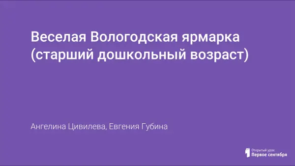 Мероприятие для старшего дошкольного возраста способствует закреплению и обобщению знаний детей о народных промыслах Вологодского края; формирует интерес к труду народных мастеров и воспитывает уважение и бережное отношение к изделиям мастеров; приобщает к традиционной русской культуре на основе использования фольклора (песни, пословицы, народные игры).