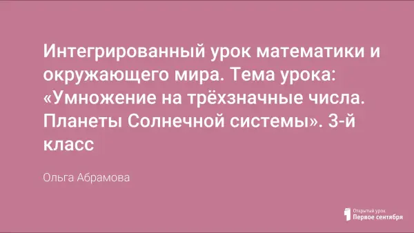 Цели урока: сформировать умение умножать многозначное числа на трёхзначное число; тренировать умение письменно умножать на двухзначное число, используя распределительное свойство умножения; тренировать устные вычислительные навыки табличного умножения; дать первичное представление о планетах Солнечной системы.