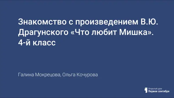 Знакомство с произведением В.Ю. Драгунского «Что любит Мишка». 4-й класс
