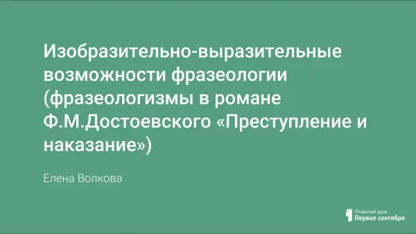 Урок русского языка на литературном материале (интеграция предметов). Тема: «Фразеология» изучается на фразеологическом материале романа Ф.М.Достоевского «Преступление и наказание». Можно предположить, что лингвистический анализ текста романа на уроке русского языка будет способствовать более глубокому и компетентному анализу текста романа на уроках литературы.