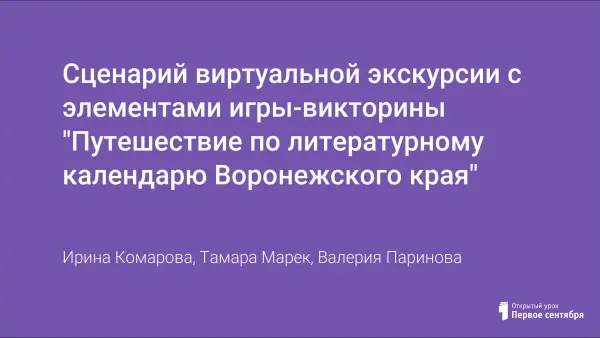 Сценарий виртуальной экскурсии с элементами игры-викторины "Путешествие по литературному календарю Воронежского края"