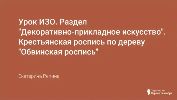 Урок ИЗО в 5-м классе представляет собой комбинированный урок (освоение новых знаний и их применение) учебно-творческой деятельности. Объектом изучения является декоративно-прикладное искусство росписи по дереву - «Обвинская роспись». Цель: приобщение школьников к истокам народного творчества малой родины; формирование эстетического вкуса учащихся через овладение элементами и традициями Обвинской росписи.