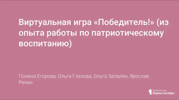 Игра стала частью воспитательной работы Школы дистанционного обучения ГОУ ЯО «Центр помощи детям» направления «Духовно-нравственное, гражданско-патриотическое воспитание и профориентация». Цель игры: развитие у учащихся гражданственности, патриотизма как важнейших духовно-нравственных и социальных ценностей.