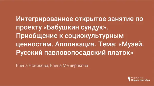 Интегрированное открытое занятие по проекту «Бабушкин сундук». Приобщение к социокультурным ценностям. Аппликация. Тема: «Музей. Русский павловопосадский платок»