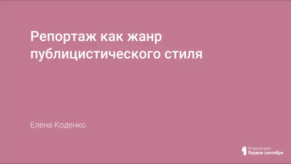Цель: формирование умения самостоятельно анализировать и создавать текст-репортаж заданной тематики. Данный урок проводится в 8-м классе и является первым по счету в теме «Репортаж». Выбранная структура урока и его содержание рациональны для решения поставленных задач и изучения заявленной темы.