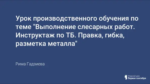 Урок производственного обучения по теме "Выполнение слесарных работ. Инструктаж по ТБ. Правка, гибка, разметка металла"