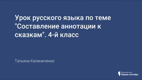 Урок русского языка в 4-м классе создающий условия для развития речи обучающихся, путем знакомства с понятием - аннотация, составлением устного и письменного текста, а также групповой и самостоятельной работы с книгой. Урок построен на приемах исследования и проектной деятельности. Использован метод дидактической игры (театрализация); наглядные методы: книги, иллюстрации, словари, справочная информация; традиционные словесные методы: беседа, монолог.