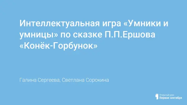 Интеллектуальная игра «Умники и умницы» по сказке П.П.Ершова «Конёк-Горбунок»