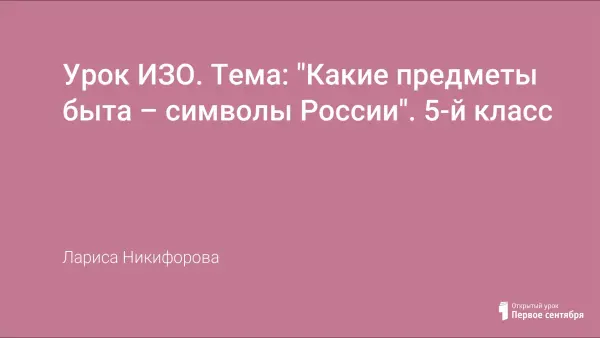 На уроке учащиеся знакомятся с современными видами декоративного искусства, узнают об их отличии от традиционных народных промыслов. В конце занятия выполняется практическая работа по росписи воображаемого предмета быта «под гжель».