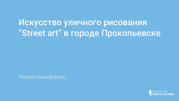 Работа посвящена искусству уличного рисования «Street art» города Прокопьевска. Услугами уличных художников пользуются крупнейшие компании мира в рекламных целях. Они уверены, что такая реклама привлечёт к себе внимание. Сегодня уличная живопись очень популярна и активно развивается с каждым годом. Количество желающих овладеть мастерством создания трехмерных уличных иллюзий постоянно растет.