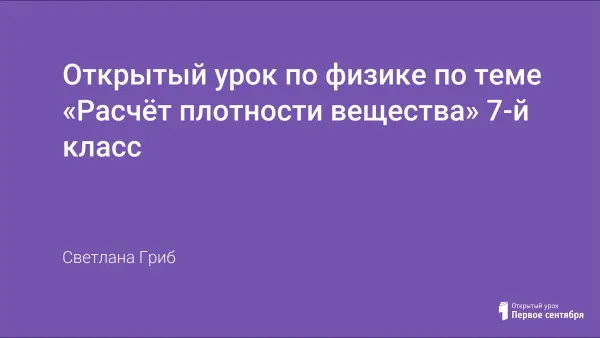 Данный урок проводится после введения понятия плотности вещества и формулы её расчета в разделе «Взаимодействие тел». Тип урока: урок совершенствования знаний, умений, навыков. Вид урока: урок-практикум.
