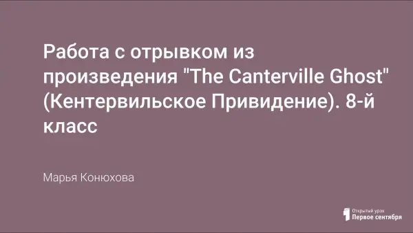 Данный урок подойдет для 8-го класса общеобразовательной школы или для 6-го класса школ с углубленным изучением иностранного языка (английского). Цель урока: введение новой лексики и ее отработка по средствам чтения рассказа «The Canterville Ghost» и выполнения заданий по данному тексту.