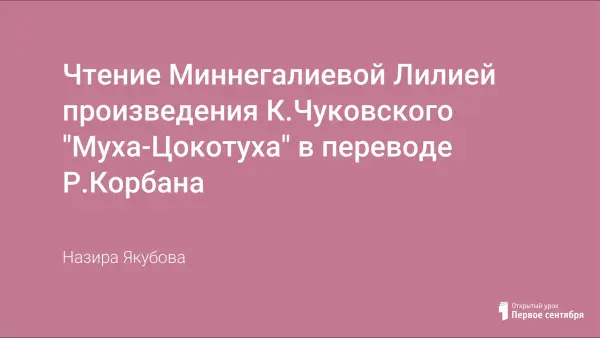 Чтение произведения К.Чуковского "Муха-цокотуха" в переводе Р.Корбана.