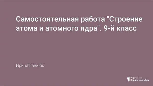 Самостоятельная работа "Строение атома и атомного ядра". 9-й класс