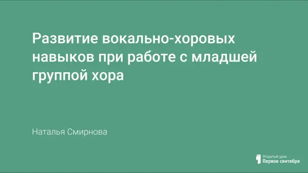 Младший хор характеризуется ограниченным голосовым диапазоном. До первой октавы — ре-ми-бемоль второй октавы. Здесь тембр голоса трудно определить на слух. Редко встречаются ярко выраженные сопрано, еще реже альты. В связи с этим, мы считаем, что в начале занятий деление на хоровые партии нецелесообразно. Главная наша задача — добиться унисонного звучания хора.