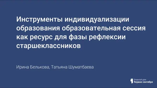 Инструменты индивидуализации образования образовательная сессия как ресурс для фазы рефлексии старшеклассников