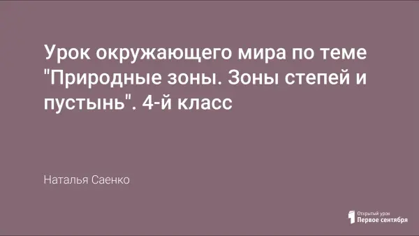 Цель урока: сформировать представление о природных зонах степей и пустынь. Решаемая проблема: какие особенности природных зон выделяют разные учёные?