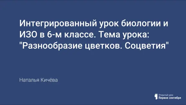 Цели урока: продолжить формирование у учащихся представлений о цветке как главном генеративном органе растения; сформировать представление о соцветии, познакомить учащихся с основными видами соцветий и их биологической ролью; способствовать развитию эстетического внимания и уважения к цветам и соцветиям; показать необходимость владения элементарными навыками изображения цветов и соцветий биологически и технологически правильно.
