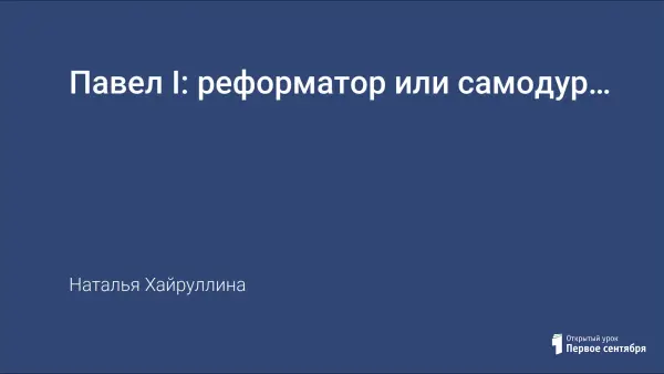 Представлен урок по теме "Павел I: реформатор или самодур…".
