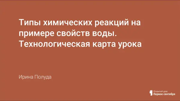 Типы химических реакций на примере свойств воды. Технологическая карта урока
