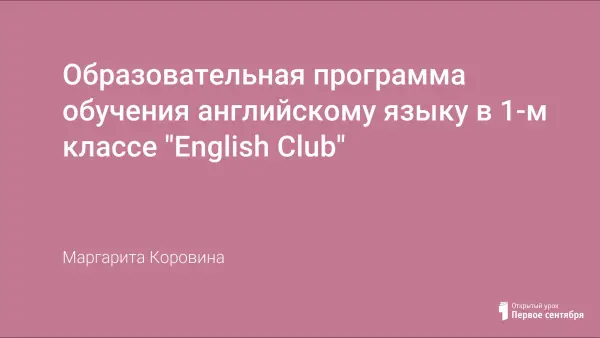 Cоздана образовательная программа для учащихся 1-х классов, в которой отражаются умения мотивировать себя к обучению, социализация в школьной среде. Основные УУД и возможные виды деятельности развиваются в рамках ФГОС и структурируются в соответствии с компонентами образовательной компетенции школьника, представленными в программе. Укрепляя уверенность ребёнка в себе, повышая его самооценку, педагог создаёт условия для его успехов и достижений в изучении иностранного языка.