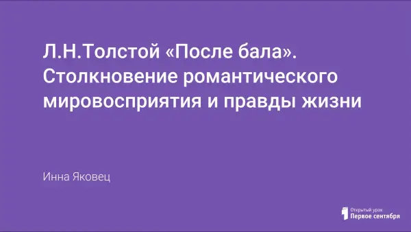 Цели урока: воспитать личность, имеющую представление о творчестве Л.Н.Толстого, о композиции рассказа «После бала», об особенностях использования приема контраста; умеющую анализировать произведение, работать в группе, высказывать свое мнение, аргументировать ответ, слушать и слышать.