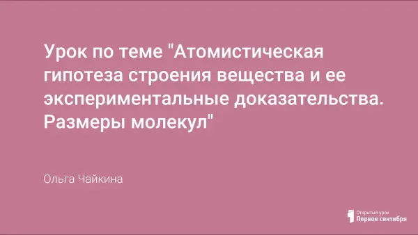 Цели урока: познакомить обучающихся с основными положениями МКТ и их опытными подтверждениями, дать понятие о размерах молекул; сформировать представления о структуре и содержании новой физической теории; раскрыть связь опыта и теории, формировать умение анализировать факты при наблюдении явлений.