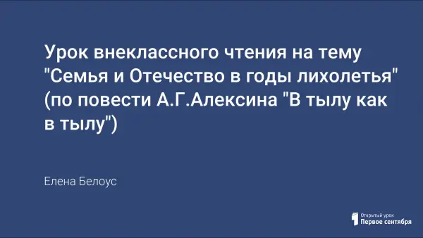 Современное молодое поколение зачастую мало знает о героях Великой Отечественной войны, сражавшихся на фронте, а о героизме людей, ковавших Победу в тылу, почти не имеет представления, поэтому так важен разговор через призму литературного текста о семейных ценностях, остающихся незыблемыми как в мирное, так и в военное время. Это позволит ребятам осознать величие Победы нашего народа и прочувствовать тяжесть бремени, выпавшего на долю каждого жителя нашей страны, независимо от его возраста.
