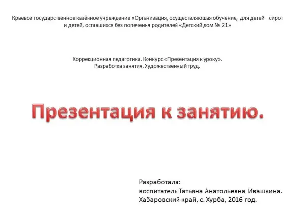 Задачи урока: расширить кругозор, научить создавать скульптуру; развивать мышление, мелкую моторику, терпение, память; учить оказывать помощь, работать в содружестве, бережно относиться к результату труда, показать варианты применения изделия.