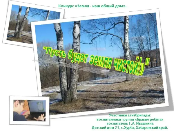Эколого-поэтические странички «Пусть будет земля чистой!» для детской агитбригады, выступающей весной перед субботником по очистке территории села от мусора.