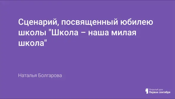 В сценарии отображены страницы истории школы; чествование педагогов-ветеранов, учителей и воспитателей, награжденных правительственными наградами; молодых специалистов. Сценарий пригодится в работе педагогов-организаторов, заместителей директоров по воспитательной работе как пособие – инструмент для подготовки и проведения юбилейной даты школы.