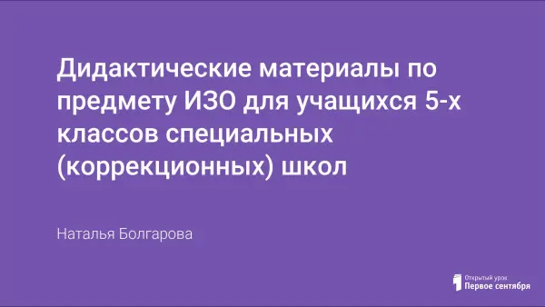 Представлена презентация к предмету ИЗО для учащихся 5-х классов специальных (коррекционных) школ.