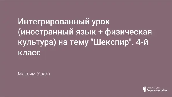 Данный урок является заключительным (обобщающим) в серии занятий, посвященный наследию Шекспира. На протяжении нескольких дополнительных уроков в 4-м классе на внеклассных занятиях английского языка были прочитаны адаптированные книги Шекспира (на английском языке) («Ромео и Джульетта», «Отелло», «Гамлет», «Макбет»). За основу урока взяты традиционные игры.