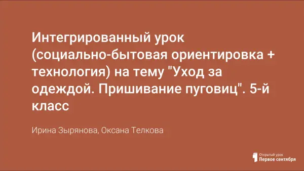 Цель урока: ознакомление учащихся с основными правилами и приёмами ухода за одеждой, технологией пришивания пуговиц на одежде.
