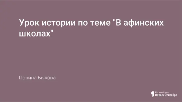 Данная работа представляет собой план урока по истории Древнего мира. Цель урока: познакомить учащихся с системой образования в афинской школе.