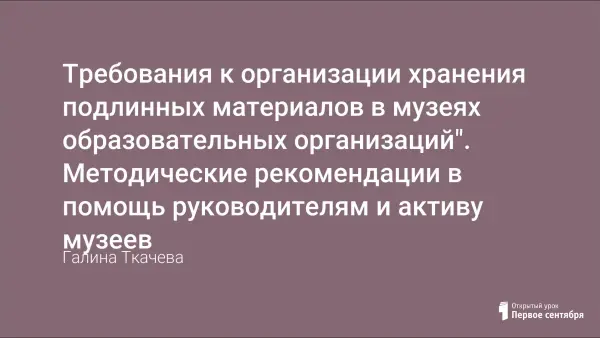 Цель методических материалов: познакомить с основными правилами хранения подлинных экспонатов в музеях образовательных учреждений, расширить круг знаний о работе школьных музеев. Материал можно использовать в работе школьного музея, на методических объединениях руководителей и актива школьных музеев. Результаты могут быть использованы в структуре курсов по историческому краеведению в образовательных учреждениях.