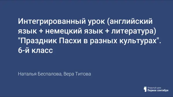 Интегрированный урок (английский язык + немецкий язык + литература) "Праздник Пасхи в разных культурах". 6-й класс