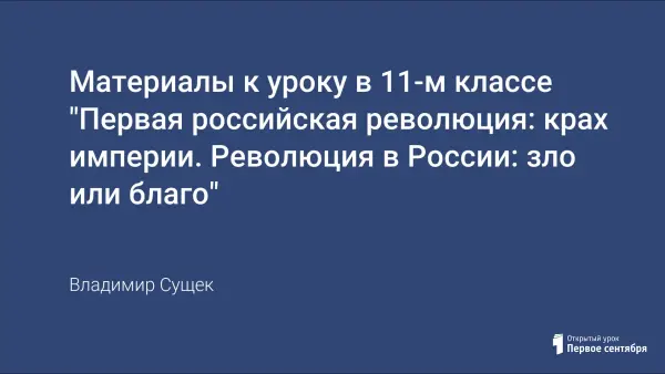В статье представлены материалы к уроку истории в 11-м классе, на котором создаются условия для осознания учащимися роли и влияния первой русской революции на российское общество. Поднимаются проблемы, связанные с противоречивостью восприятия итогов этого исторического события.