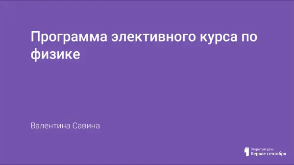 В статье показана необходимость введения элективных курсов в учебный процесс. Раскрыты функции элективных курсов, особенности их структуры и содержания. Представлена программа элективного курса по физике. Отмечены приоритетные формы и методы обучения, применяемые на учебных занятиях.