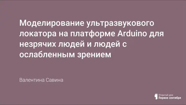 В статье представлен учебный проект «Моделирование ультразвукового локатора на платформе Arduino для незрячих людей и людей с ослабленным зрением». Принцип работы локатора основан на отражении ультразвуковых волн от препятствий. Использование изготовленного локатора позволит незрячим людям и людям с ослабленным зрением ориентироваться в пространстве, получая информацию о препятствии в виде звуковых сигналов разной высоты.