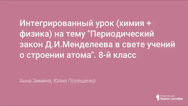 Интегрированный урок (химия + физика) на тему "Периодический закон Д.И.Менделеева в свете учений о строении атома". 8-й класс