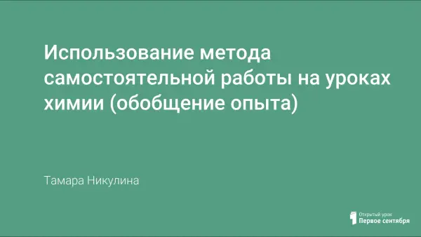 Использование метода самостоятельной работы на уроках химии (обобщение опыта)