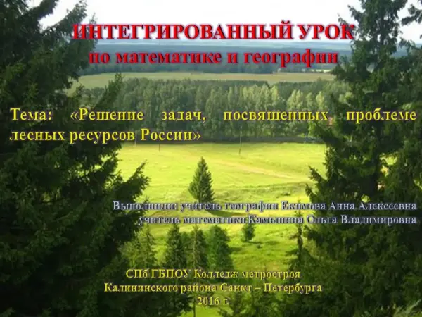 Цели урока: научить применять знания на практике и действовать в нестандартной ситуации; познакомить учащихся со спецификой лесной промышленности России.