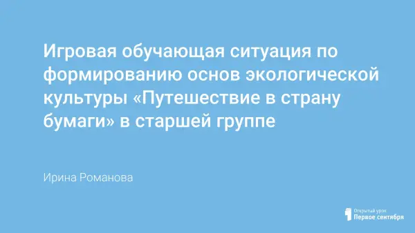 ИОС «Путешествие в страну бумаги» разработана для детей старшего дошкольного возраста. Материал будет полезен воспитателям старших групп и руководителям изостудии. ИОС направлена на воспитание бережного отношения к природе и развитие творческих способностей детей. Этот материал может быть итогом проекта по темам: «Экология», «Деревья», «Бумага».